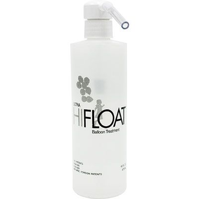 ULTRA HI-FLOAT Balloon Treatment. Hi-Float is a plasticizer that you squirt into a balloon to create a layer of plastic which is much less permeable to helium than the latex of a balloon. Float times increase up to 25 times more.