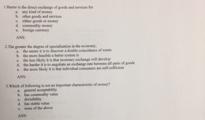 Credit or loan refers to an agreement between. DEFECTS OF BARTER SYSTEM -Following are the main defects of this system. However such double coincidence is very rare. Which is the main problem with the barter system of exchangea. Lack of Double Coincidence of Wants. C money eliminates the ʺdouble coincidence of wantsʺ problem. A Money can easily exchange any commodity b It is based on double co-incidence of wants c It is generally accepted as a medium of exchange of goods with money d It acts as a measure and store of value.