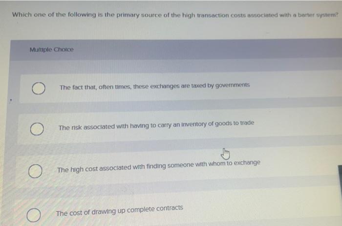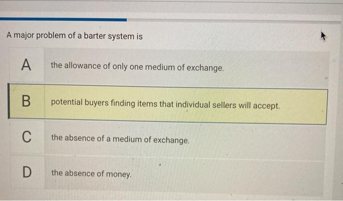Which Of The Following Is The Main Problem With The Barter System Of Exchange?